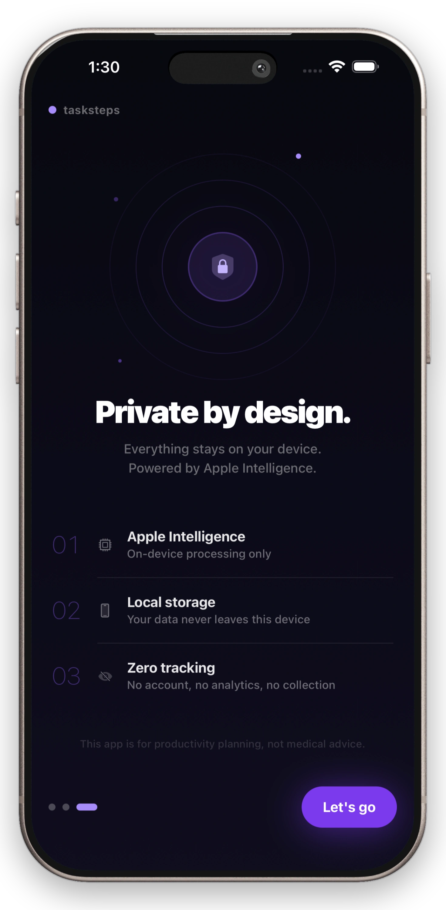 TaskSteps — on-device, private, and built for iOSExplore features
